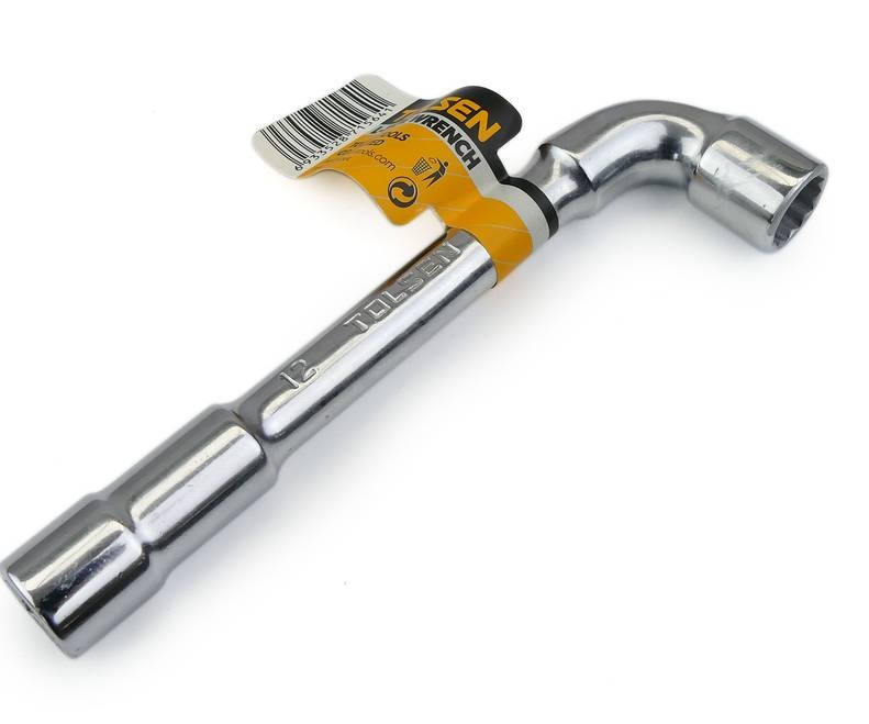 Ключ TOLSEN угловой Г-образный подходит для типового крепежа. Преимущество - высокая прочность рабочих зон, грани, не подверженные истиранию. Инструмент обеспечивает простой демонтаж стандартных болтов. Ключ выполнен из специальной стали, дополнительно защищенной от коррозии.