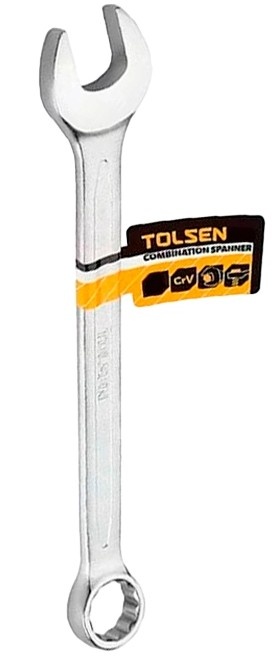 Ключ комбинированный Tolsen используется для работ с крепежом при проведении различных монтажных и ремонтных работ. Ключ выполнен из качественной хромованадиевой стали. Материал отличается высокой прочностью и долговечностью. Специальное покрытие обеспечивает защиту от коррозии и стойкость к износу. Ключ который в своей конструкции одновременно открытый и кольцевой тип.