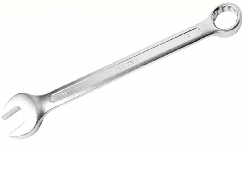 Ключ комбинированный Tolsen используется для работ с крепежом при проведении различных монтажных и ремонтных работ. Ключ выполнен из качественной хромованадиевой стали. Материал отличается высокой прочностью и долговечностью. Специальное покрытие обеспечивает защиту от коррозии и стойкость к износу. Ключ который в своей конструкции одновременно открытый и кольцевой тип.
