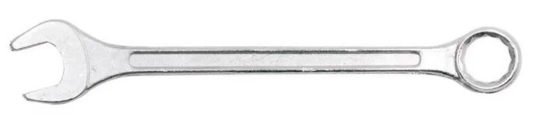 Ключ комбинированный - выполнен из высококачественной из хромванадиевой стали CrV. Ключ кованый, отлично откалиброван. Глянцевое покрытие минимизирует проскальзывание ключа при загрязнении маслом. Инструмент предназначен для соединения (разъединения) резьбового соединения путём закручивания (раскручивания) болтов, гаек и других деталей. На одном конце ключа расположена рожковая, а на другом — накидная головка. Обе головки имеют одинаковый размер. Предназначен для бытовых и профессиональных работ.