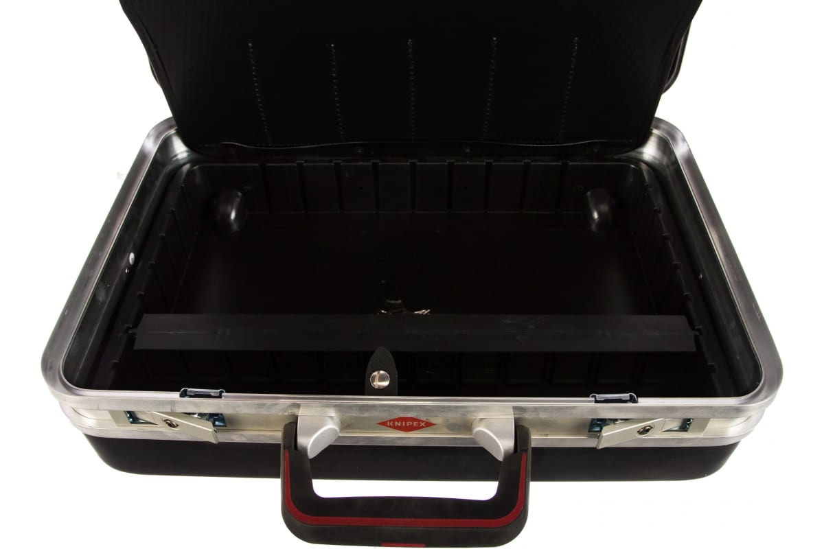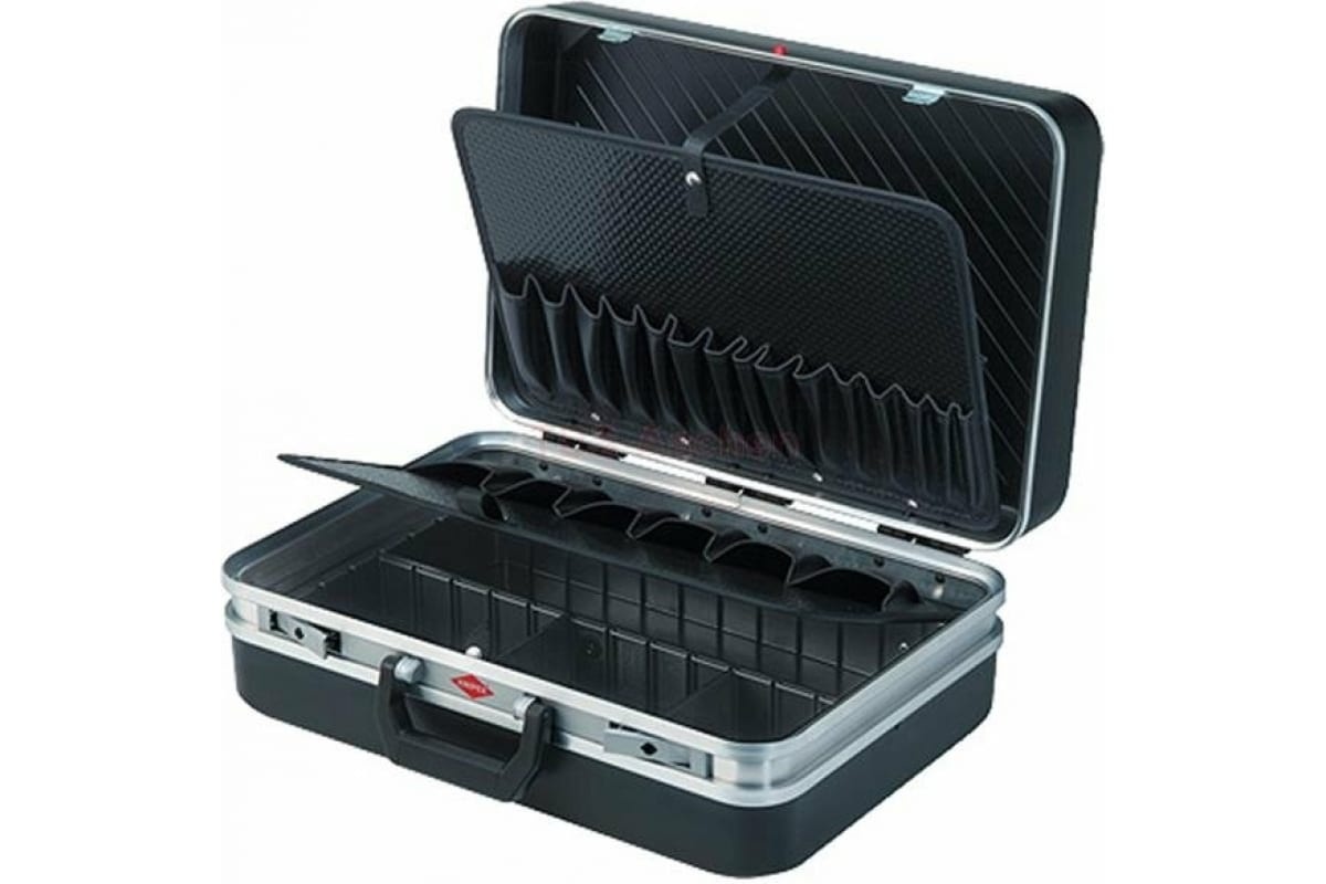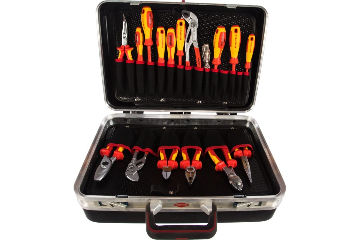 Набор инструментов KNIPEX KN-002120 — это профессиональный комплект электрика, состоящий из плоскогубцев, бокорезов, отверток, универсальных переставных клещей и вспомогательного инструмента. Все предметы компактно расположены и надежно закреплены в специальных карманах. Чемодан выполнен из прочного ABS пластика и имеет двойную алюминиевую раму по периметру, что предотвращает деформацию. Максимально допустимая нагрузка — 20 кг.