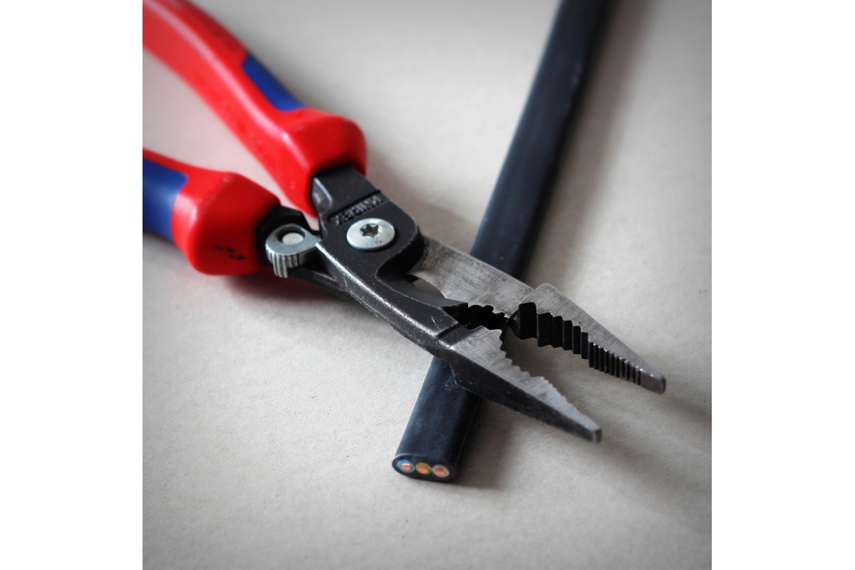 Инструмент для снятия изоляции KNIPEX KN-1382200 используется для снятия оболочки с одножильных и многожильных проводов диаметром от 0.5 до 15 мм. Клещи могут также использоваться для резки кабеля и прочих электромонтажных работ. Особенностью данной модели является наличие активной стопорной защелки, которая позволяет фиксировать лезвия инструмента в сомкнутом состоянии. Рабочая часть инструмента изготовлена из кованной инструментальной стали, которая прошла дополнительную закалку в масле.
