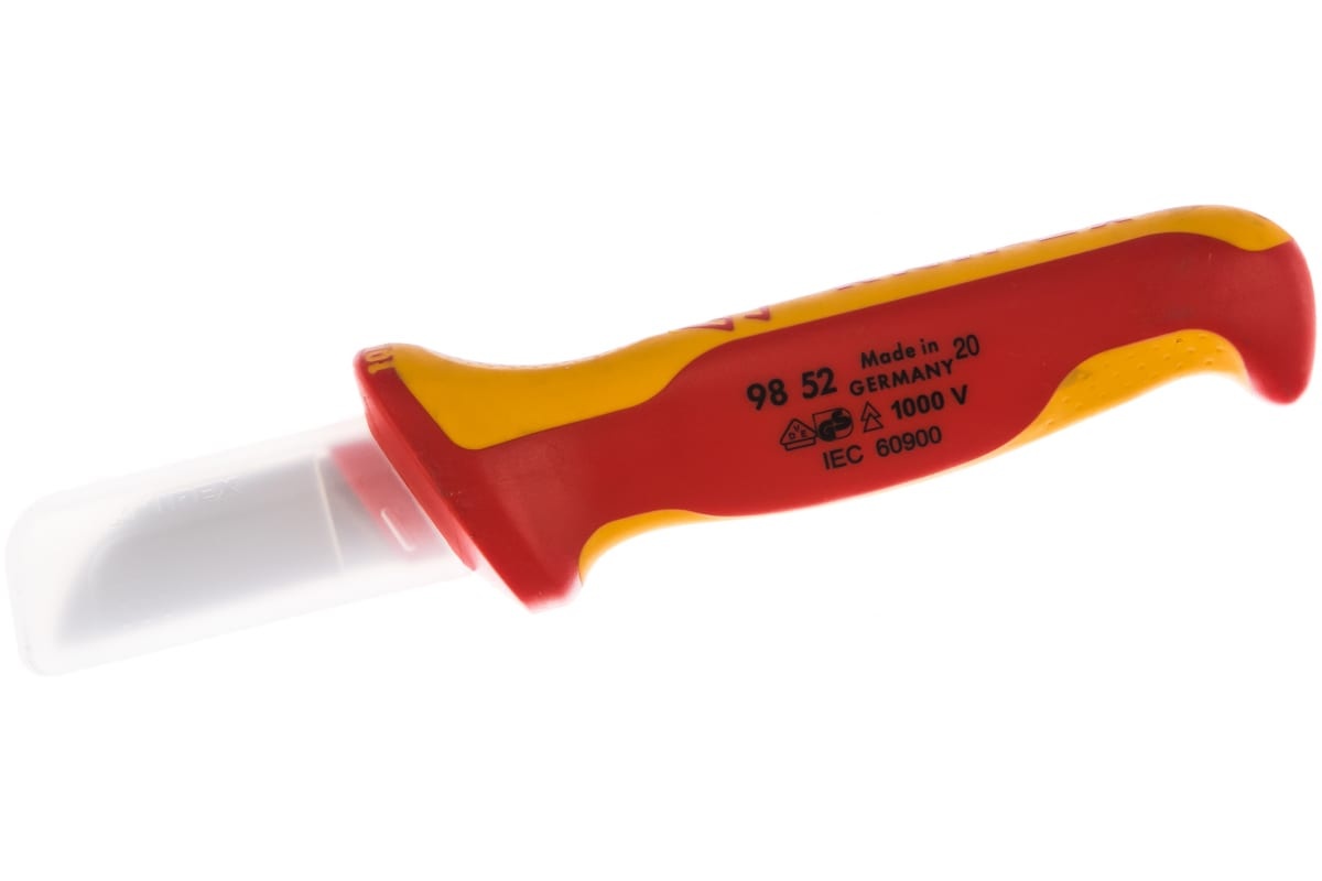 Кабельный нож KNIPEX KN-9852 предназначен для работы с электрическими проводами и кабелями. Инструмент имеет фиксированное лезвие с прямыми режущими кромками, отличающееся высокой прочностью. Рукоятка ножа снабжена специальной многокомпонентной изоляцией, служащей для защиты рук оператора от поражения электрическим током во время работы. Длина 180 мм. Длина лезвия 50 мм.