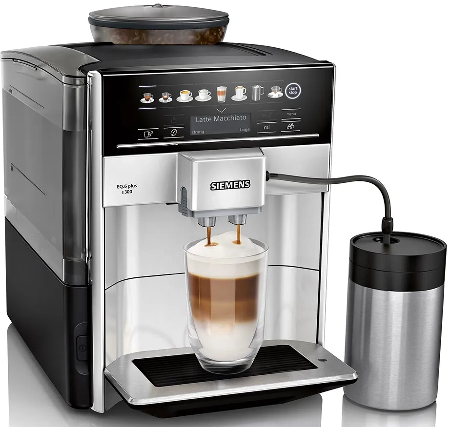Будь то кофе с молоком, капучино или латте-макиато — благодаря полностью автоматическим кофемашинам Siemens Вы получаете совершенный вкус кофе одним нажатием кнопки. И лучшее: для приготовления всех кофейных напитков Вам не нужно переставлять стакан. В зависимости от выбранного кофейного напитка, система автоматически выбирает соотношение горячего молока, молочной пенки и кофе.