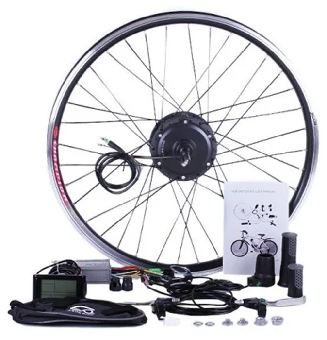 Внимание: набор НЕ комплектуется аккумулятором! Электровелонабор подойдет к установке на любую модель Вашего двухколесного байка. Благодаря балансу мощности и надежности 350w мотора с планетарным редуктором – Вы с легкостью взберетесь к новым горизонтам. Элементы набора готовы к монтажу. Устанавливаются легко и без проблем с посадочными местами и трещотками. Собранное и заспицованное колесо с электродвигателем 36v 350w, ставится на переднюю или заднюю ось велосипеда (в зависимости от комплекта). Крепкий обод с усиленными спицами защищает мотор от деформации, вынослив и стойкий к нагрузкам. Отличный накат и легкость хода вместе с ассистирующим режимом эксплуатации экономят заряд батареи и не превратят «карету в тыкву» на дальней дистанции! Система ассистирования педалям (Pedal Assist System) подходит к любому напряжению цепи и поддерживает движение в гибридном режиме, без участия ручки газа. Частота и подбор оборотов двигателя произойдет автоматически, с вращением педалей. Максимальная нагрузка на аккумуляторную батарею происходит при запуске мотор-колеса. Используйте экономичный режим езды, сохранив от 20% ресурсов АКБ, запуская двигатель с помощью PAS. Мощность 350 ватт даст Вам скорость до 35 км, в зависимости от общей нагрузки и проходимости пути. Включается режим «PAS» управляющим контроллером 36v 18A, гарантирующим плавный пуск электровелосипеда. Управление аккумуляторами и датчиками холла двигателя – его основная задача. Он организует корректную работу колеса и тормозных ручек, управления скоростью и тягой мотора. Новый уровень управления велосипедом - сделает путь комфортным и приятным. Режим имитации крутящего момента, ассистирование педалей, отключение двигателя при торможении и передача информации от дисплея, спидометра – полезные пользовательские функции. Вы будете контролировать ситуацию в дороге на 100% и не останетесь с разряженным аккумулятором в неожиданный момент. Дисплей LCD. Также набор оснащен ручками газа/тормоза, которые управляют функцией приведения в движение или тормоза мотора колеса, показывает индикацию емкости аккумулятора. Компактное зарядное устройство для быстрого и безопасного заряда, сохраняющего срок службы аккумуляторов. А грипсы, в свою очередь, обеспечат надежный захвата руля, смягчения вибрации, уменьшение нагрузки на суставы.