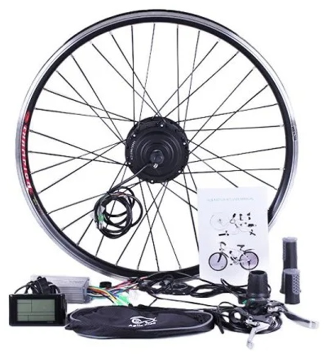 Внимание: набор НЕ комплектуется аккумулятором! Электровелонабор подойдет к установке на любую модель Вашего двухколесного байка. Благодаря балансу мощности и надежности 350w мотора с планетарным редуктором – Вы с легкостью взберетесь к новым горизонтам. Элементы набора готовы к монтажу. Устанавливаются легко и без проблем с посадочными местами и трещотками. Собранное и заспицованное колесо с электродвигателем 36v 350w, ставится на переднюю или заднюю ось велосипеда (в зависимости от комплекта). Крепкий обод с усиленными спицами защищает мотор от деформации, вынослив и стойкий к нагрузкам. Отличный накат и легкость хода вместе с ассистирующим режимом эксплуатации экономят заряд батареи и не превратят «карету в тыкву» на дальней дистанции! Система ассистирования педалям (Pedal Assist System) подходит к любому напряжению цепи и поддерживает движение в гибридном режиме, без участия ручки газа. Частота и подбор оборотов двигателя произойдет автоматически, с вращением педалей. Максимальная нагрузка на аккумуляторную батарею происходит при запуске мотор-колеса. Используйте экономичный режим езды, сохранив от 20% ресурсов АКБ, запуская двигатель с помощью PAS. Мощность 350 ватт даст Вам скорость до 35 км, в зависимости от общей нагрузки и проходимости пути. Включается режим «PAS» управляющим контроллером 36v 18A, гарантирующим плавный пуск электровелосипеда. Управление аккумуляторами и датчиками холла двигателя – его основная задача. Он организует корректную работу колеса и тормозных ручек, управления скоростью и тягой мотора. Новый уровень управления велосипедом - сделает путь комфортным и приятным. Режим имитации крутящего момента, ассистирование педалей, отключение двигателя при торможении и передача информации от дисплея, спидометра – полезные пользовательские функции. Вы будете контролировать ситуацию в дороге на 100% и не останетесь с разряженным аккумулятором в неожиданный момент. Дисплей LCD. Также набор оснащен ручками газа/тормоза, которые управляют функцией приведения в движение или тормоза мотора колеса, показывает индикацию емкости аккумулятора. Компактное зарядное устройство для быстрого и безопасного заряда, сохраняющего срок службы аккумуляторов. А грипсы, в свою очередь, обеспечат надежный захвата руля, смягчения вибрации, уменьшение нагрузки на суставы.
