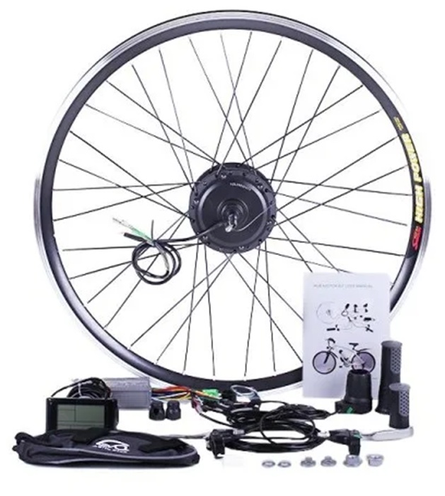 Внимание: набор НЕ комплектуется аккумулятором! Электровелонабор подойдет к установке на любую модель Вашего двухколесного байка. Благодаря балансу мощности и надежности 350w мотора с планетарным редуктором – Вы с легкостью взберетесь к новым горизонтам. Элементы набора готовы к монтажу. Устанавливаются легко и без проблем с посадочными местами и трещотками. Собранное и заспицованное колесо с электродвигателем 36v 350w, ставится на переднюю или заднюю ось велосипеда (в зависимости от комплекта). Крепкий обод с усиленными спицами защищает мотор от деформации, вынослив и стойкий к нагрузкам. Отличный накат и легкость хода вместе с ассистирующим режимом эксплуатации экономят заряд батареи и не превратят «карету в тыкву» на дальней дистанции! Система ассистирования педалям (Pedal Assist System) подходит к любому напряжению цепи и поддерживает движение в гибридном режиме, без участия ручки газа. Частота и подбор оборотов двигателя произойдет автоматически, с вращением педалей. Максимальная нагрузка на аккумуляторную батарею происходит при запуске мотор-колеса. Используйте экономичный режим езды, сохранив от 20% ресурсов АКБ, запуская двигатель с помощью PAS. Мощность 350 ватт даст Вам скорость до 35 км, в зависимости от общей нагрузки и проходимости пути. Включается режим «PAS» управляющим контроллером 36v 18A, гарантирующим плавный пуск электровелосипеда. Управление аккумуляторами и датчиками холла двигателя – его основная задача. Он организует корректную работу колеса и тормозных ручек, управления скоростью и тягой мотора. Новый уровень управления велосипедом - сделает путь комфортным и приятным. Режим имитации крутящего момента, ассистирование педалей, отключение двигателя при торможении и передача информации от дисплея, спидометра – полезные пользовательские функции. Вы будете контролировать ситуацию в дороге на 100% и не останетесь с разряженным аккумулятором в неожиданный момент. Дисплей LCD. Также набор оснащен ручками газа/тормоза, которые управляют функцией приведения в движение или тормоза мотора колеса, показывает индикацию емкости аккумулятора. Компактное зарядное устройство для быстрого и безопасного заряда, сохраняющего срок службы аккумуляторов. А грипсы, в свою очередь, обеспечат надежный захвата руля, смягчения вибрации, уменьшение нагрузки на суставы.