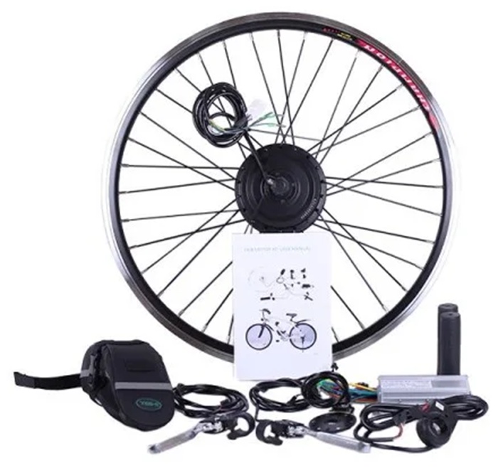 Внимание: набор НЕ комплектуется аккумулятором! Электровелонабор подойдет к установке на любую модель Вашего двухколесного байка. Благодаря балансу мощности и надежности 1000w мотора с планетарным редуктором – Вы с легкостью взберетесь к новым горизонтам. Элементы набора готовы к монтажу. Устанавливаются легко и без проблем с посадочными местами и трещотками. Собранное и заспицованное колесо с электродвигателем 36v 1000w, ставится на переднюю или заднюю ось велосипеда (в зависимости от комплекта). Крепкий обод с усиленными спицами защищает мотор от деформации, вынослив и стойкий к нагрузкам. Отличный накат и легкость хода вместе с ассистирующим режимом эксплуатации экономят заряд батареи и не превратят «карету в тыкву» на дальней дистанции! Система ассистирования педалям (Pedal Assist System) подходит к любому напряжению цепи и поддерживает движение в гибридном режиме, без участия ручки газа. Частота и подбор оборотов двигателя произойдет автоматически, с вращением педалей. Максимальная нагрузка на аккумуляторную батарею происходит при запуске мотор-колеса. Используйте экономичный режим езды, сохранив от 20% ресурсов АКБ, запуская двигатель с помощью PAS. Мощность 1000 ватт даст Вам скорость до 35 км, в зависимости от общей нагрузки и проходимости пути. Включается режим «PAS» управляющим контроллером 36v 18A, гарантирующим плавный пуск электровелосипеда. Управление аккумуляторами и датчиками холла двигателя – его основная задача. Он организует корректную работу колеса и тормозных ручек, управления скоростью и тягой мотора. Новый уровень управления велосипедом - сделает путь комфортным и приятным. Режим имитации крутящего момента, ассистирование педалей, отключение двигателя при торможении и передача информации от дисплея, спидометра – полезные пользовательские функции. Вы будете контролировать ситуацию в дороге на 100% и не останетесь с разряженным аккумулятором в неожиданный момент. Также набор оснащен ручками газа/тормоза, которые управляют функцией приведения в движение или тормоза мотора колеса, показывает индикацию емкости аккумулятора. Компактное зарядное устройство для быстрого и безопасного заряда, сохраняющего срок службы аккумуляторов. А грипсы, в свою очередь, обеспечат надежный захвата руля, смягчения вибрации, уменьшение нагрузки на суставы.