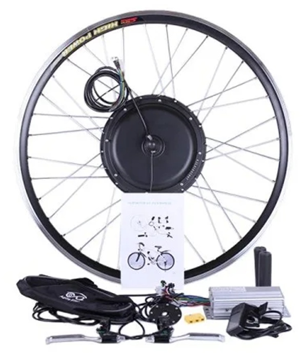 Внимание: набор НЕ комплектуется аккумулятором! Электровелонабор подойдет к установке на любую модель Вашего двухколесного байка. Благодаря балансу мощности и надежности 1000w мотора с планетарным редуктором – Вы с легкостью взберетесь к новым горизонтам. Элементы набора готовы к монтажу. Устанавливаются легко и без проблем с посадочными местами и трещотками. Собранное и заспицованное колесо с электродвигателем 48v 1000w, ставится на переднюю или заднюю ось велосипеда (в зависимости от комплекта). Крепкий обод с усиленными спицами защищает мотор от деформации, вынослив и стойкий к нагрузкам. Отличный накат и легкость хода вместе с ассистирующим режимом эксплуатации экономят заряд батареи и не превратят «карету в тыкву» на дальней дистанции! Система ассистирования педалям (Pedal Assist System) подходит к любому напряжению цепи и поддерживает движение в гибридном режиме, без участия ручки газа. Частота и подбор оборотов двигателя произойдет автоматически, с вращением педалей. Максимальная нагрузка на аккумуляторную батарею происходит при запуске мотор-колеса. Используйте экономичный режим езды, сохранив от 20% ресурсов АКБ, запуская двигатель с помощью PAS. Мощность 1000 ватт даст Вам скорость до 35 км, в зависимости от общей нагрузки и проходимости пути. Включается режим «PAS» управляющим контроллером 48v 18A, гарантирующим плавный пуск электровелосипеда. Управление аккумуляторами и датчиками холла двигателя – его основная задача. Он организует корректную работу колеса и тормозных ручек, управления скоростью и тягой мотора. Новый уровень управления велосипедом - сделает путь комфортным и приятным. Режим имитации крутящего момента, ассистирование педалей, отключение двигателя при торможении и передача информации от дисплея, спидометра – полезные пользовательские функции. Вы будете контролировать ситуацию в дороге на 100% и не останетесь с разряженным аккумулятором в неожиданный момент. Также набор оснащен ручками газа/тормоза, которые управляют функцией приведения в движение или тормоза мотора колеса, показывает индикацию емкости аккумулятора. Компактное зарядное устройство для быстрого и безопасного заряда, сохраняющего срок службы аккумуляторов. А грипсы, в свою очередь, обеспечат надежный захвата руля, смягчения вибрации, уменьшение нагрузки на суставы.