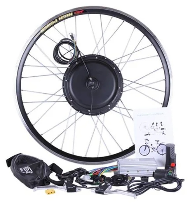 Внимание: набор НЕ комплектуется аккумулятором! Электровелонабор подойдет к установке на любую модель Вашего двухколесного байка. Благодаря балансу мощности и надежности 1000w мотора с планетарным редуктором – Вы с легкостью взберетесь к новым горизонтам. Элементы набора готовы к монтажу. Устанавливаются легко и без проблем с посадочными местами и трещотками. Собранное и заспицованное колесо с электродвигателем 48v 1000w, ставится на переднюю или заднюю ось велосипеда (в зависимости от комплекта). Крепкий обод с усиленными спицами защищает мотор от деформации, вынослив и стойкий к нагрузкам. Отличный накат и легкость хода вместе с ассистирующим режимом эксплуатации экономят заряд батареи и не превратят «карету в тыкву» на дальней дистанции! Система ассистирования педалям (Pedal Assist System) подходит к любому напряжению цепи и поддерживает движение в гибридном режиме, без участия ручки газа. Частота и подбор оборотов двигателя произойдет автоматически, с вращением педалей. Максимальная нагрузка на аккумуляторную батарею происходит при запуске мотор-колеса. Используйте экономичный режим езды, сохранив от 20% ресурсов АКБ, запуская двигатель с помощью PAS. Мощность 350 ватт даст Вам скорость до 35 км, в зависимости от общей нагрузки и проходимости пути. Включается режим «PAS» управляющим контроллером 48v 18A, гарантирующим плавный пуск электровелосипеда. Управление аккумуляторами и датчиками холла двигателя – его основная задача. Он организует корректную работу колеса и тормозных ручек, управления скоростью и тягой мотора. Новый уровень управления велосипедом - сделает путь комфортным и приятным. Режим имитации крутящего момента, ассистирование педалей, отключение двигателя при торможении и передача информации от дисплея, спидометра – полезные пользовательские функции. Вы будете контролировать ситуацию в дороге на 100% и не останетесь с разряженным аккумулятором в неожиданный момент. Также набор оснащен ручками газа/тормоза, которые управляют функцией приведения в движение или тормоза мотора колеса, показывает индикацию емкости аккумулятора. Компактное зарядное устройство для быстрого и безопасного заряда, сохраняющего срок службы аккумуляторов. А грипсы, в свою очередь, обеспечат надежный захвата руля, смягчения вибрации, уменьшение нагрузки на суставы.