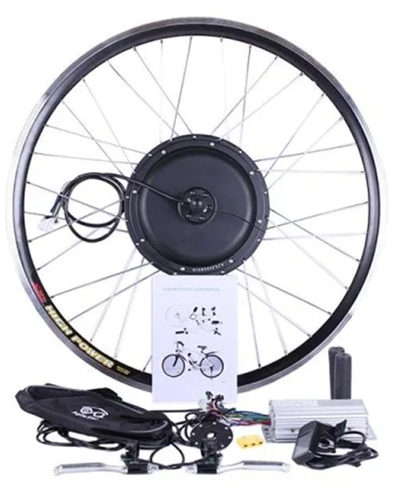 Внимание: набор НЕ комплектуется аккумулятором! Электровелонабор подойдет к установке на любую модель Вашего двухколесного байка. Благодаря балансу мощности и надежности 1000w мотора с планетарным редуктором – Вы с легкостью взберетесь к новым горизонтам. Элементы набора готовы к монтажу. Устанавливаются легко и без проблем с посадочными местами и трещотками. Собранное и заспицованное колесо с электродвигателем 48v 1000w, ставится на переднюю или заднюю ось велосипеда (в зависимости от комплекта). Крепкий обод с усиленными спицами защищает мотор от деформации, вынослив и стойкий к нагрузкам. Отличный накат и легкость хода вместе с ассистирующим режимом эксплуатации экономят заряд батареи и не превратят «карету в тыкву» на дальней дистанции! Система ассистирования педалям (Pedal Assist System) подходит к любому напряжению цепи и поддерживает движение в гибридном режиме, без участия ручки газа. Частота и подбор оборотов двигателя произойдет автоматически, с вращением педалей. Максимальная нагрузка на аккумуляторную батарею происходит при запуске мотор-колеса. Используйте экономичный режим езды, сохранив от 20% ресурсов АКБ, запуская двигатель с помощью PAS. Мощность 1000 ватт даст Вам скорость до 35 км, в зависимости от общей нагрузки и проходимости пути. Включается режим «PAS» управляющим контроллером 48v 18A, гарантирующим плавный пуск электровелосипеда. Управление аккумуляторами и датчиками холла двигателя – его основная задача. Он организует корректную работу колеса и тормозных ручек, управления скоростью и тягой мотора. Новый уровень управления велосипедом - сделает путь комфортным и приятным. Режим имитации крутящего момента, ассистирование педалей, отключение двигателя при торможении и передача информации от дисплея, спидометра – полезные пользовательские функции. Вы будете контролировать ситуацию в дороге на 100% и не останетесь с разряженным аккумулятором в неожиданный момент. Также набор оснащен ручками газа/тормоза, которые управляют функцией приведения в движение или тормоза мотора колеса, показывает индикацию емкости аккумулятора. Компактное зарядное устройство для быстрого и безопасного заряда, сохраняющего срок службы аккумуляторов. А грипсы, в свою очередь, обеспечат надежный захвата руля, смягчения вибрации, уменьшение нагрузки на суставы.