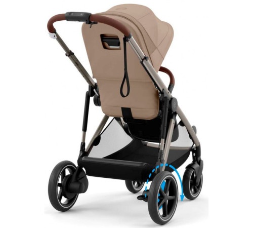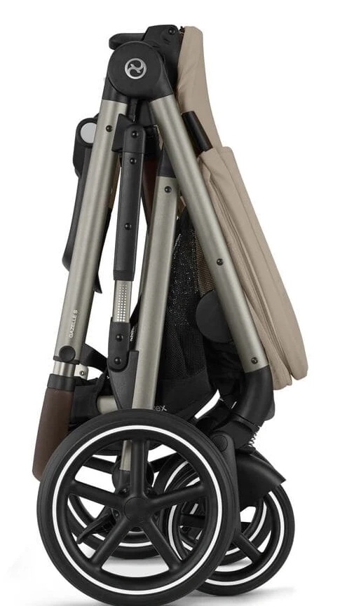 Шасси коляски Сайбекс еГазель продумано до мелочей. Легко и просто складывается шасси вместе с прогулочным сиденьем, тип складывания - "книжка". Коляска в сложенном виде устойчиво стоит вертикально и занимает очень мало места. Вы можете сложенную коляску разместить у себя дома в любом месте. Шасси коляски благодаря современной подвеске скрадывает все неровности дороги и имеет очень плавный ход.