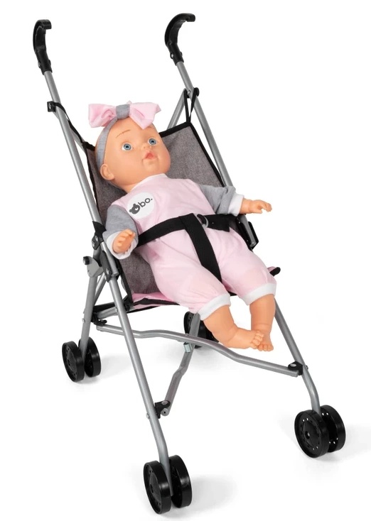 Представляем Бо. Коляска – идеальный компаньон для кукольных приключений вашего малыша! Эта коляска, предназначенная для перевозки кукол ростом до 42 см, предлагает восхитительное сочетание функциональности и стиля. Одной из его особенностей является удобный размер, благодаря которому его невероятно легко хранить и носить с собой. Собираетесь ли вы в парк, в гости к другу или просто играете дома, эту коляску можно легко сложить и хранить, когда она не используется, что обеспечивает удобную транспортировку. Безопасность превыше всего, и Бо. В этом отношении коляска не идет на компромиссы. Он оснащен ремнями безопасности, которые гарантируют, что драгоценная кукла вашего ребенка будет чувствовать себя комфортно и защищена во время каждой прогулки. Бо. коляска не только практична, но и имеет привлекательный дизайн. Выполненное из красивой ткани серых и розовых оттенков, оно излучает элегантность и игривость. Знаменитый логотип bo. напечатан на ткани колясок, что придает коляскам необычность и делает их мгновенно узнаваемыми.