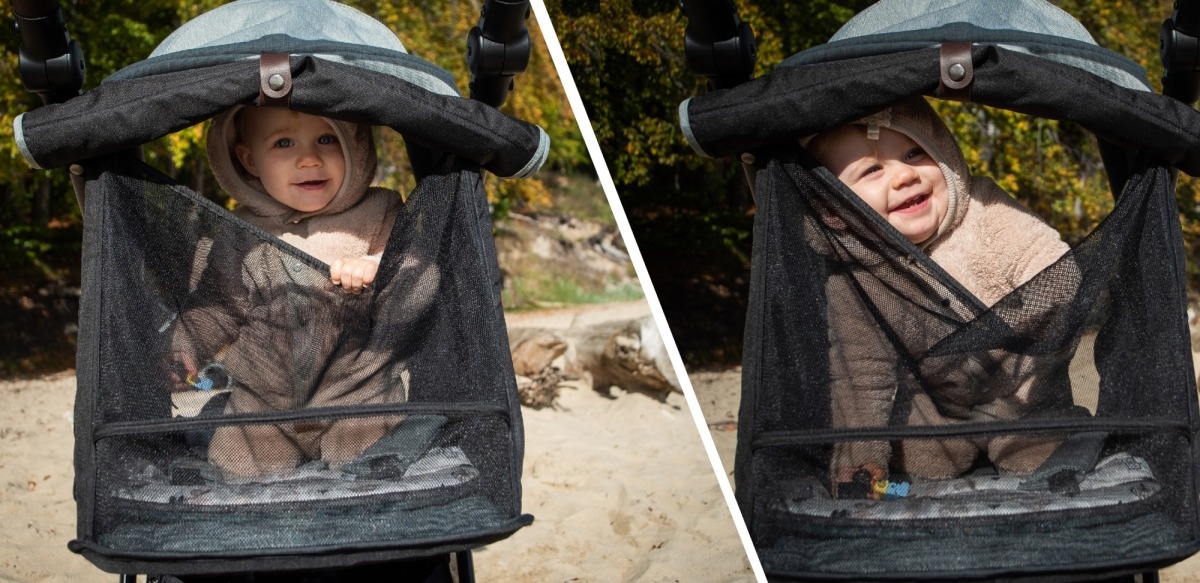 Благодаря тому, что Espiro Look — это легкая коляска, ее можно легко поднять и перенести при необходимости. Ничто не ограничивает вас в совместном познании мира. Коляска оснащена теплым чехлом для ног и регулируемым солнцезащитным козырьком, он отлично справится с любыми погодными условиями.