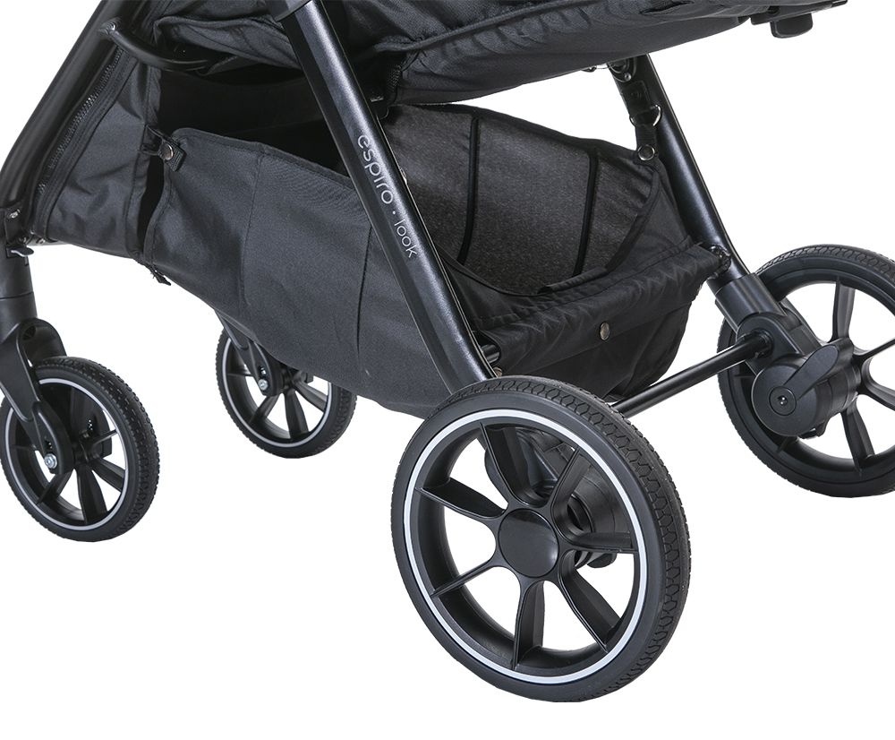 Espiro Look разработана с учетом ожиданий современных родителей, которые требуют не только функциональности и безопасности, но и красивого внешнего вида тканей и аксессуаров, а также уюта при непосредственном контакте малыша с ним. Коляска рекомендована для малышей от 0 до 22 кг.