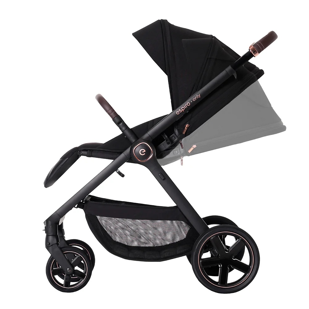 Большим преимуществом является качественный матрас в двустороннем чехле - хлопок/бамбук . У люльки есть дополнительный козырек и встроенная противомоскитная сетка - летом нет необходимости использовать дополнительные аксессуары для защиты от солнца или насекомых.Если ребенок начинает садиться и наблюдает за окружающим миром, ему нужна коляска с безопасным и удобным сиденьем. В Espiro Only прогулочный блок можно регулировать в обоих направлениях: лицом к родителям и по ходу движения. Чаще самые маленькие чувствуют себя в безопасности, когда видят своих родителей во время прогулок, а когда малыши растут и становятся старше, их больше всего интересует окружающий мир.
