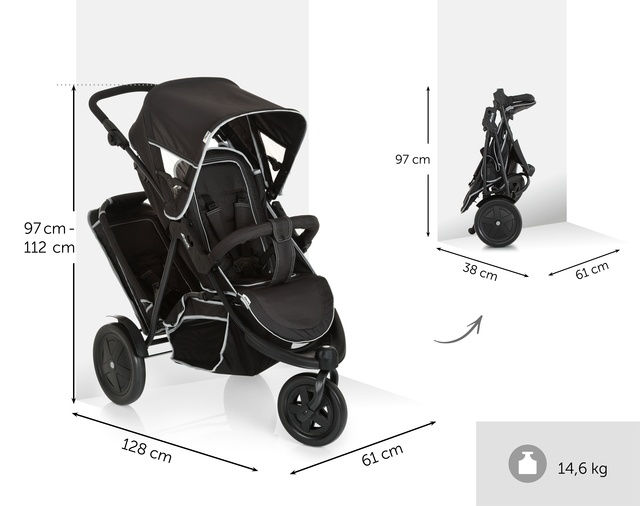 Hauck Freerider – компактная коляска для брата и сестры от 6 месяцев. В Freerider с комфортом могут разместиться двое детей сидячего возраста и старше. А если вы путешествуете только с одним ребенком, нижнее сиденье можно легко снять. Благодаря простому механизму складывания и компактным размерам (97 x 61 x 38 см) вы можете путешествовать с комфортом. В комплект поставки входит дождевик на случай дождливой погоды.