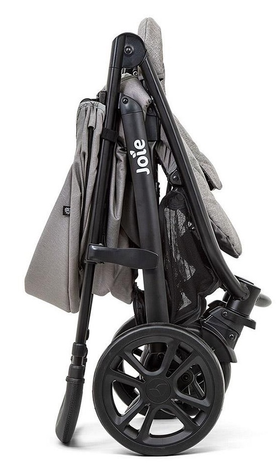 Прочная рама из алюминия компактно складывается «книжкой», в собранном виде занимает совсем мало места. Хранить коляску можно даже без опоры, просто поставьте на тормоз задние колёса. В сложенном положении все колёса оказываются с одной стороны, а значит перенося коляску за бампер, который одновременно и ручка для переноски, вы не испачкаете свою одежду. Все колёса литые, ненадувные. Передние поворотные, с возможностью фиксирования для преодоления препятствий на дороге. Амортизация на задних колёсах намного лучше, чем у большинства моделей данной категории. Ручка для управления удобной эргономичный формы и управлять коляской очень комфортно. Все необходимы мелочи вы сможете разместить в корзине для покупок и удобном органайзере с кармашками.