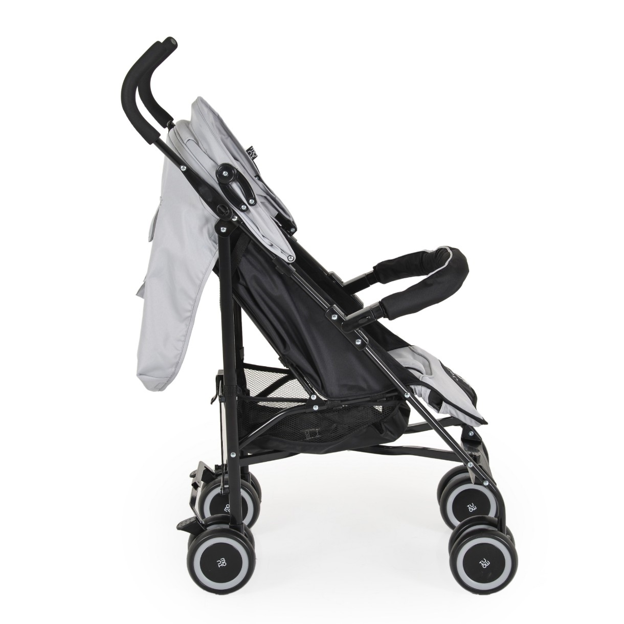 Пятиточечная система ремней безопасности с мягкими подплечниками. Спинка с различными положениями для сидения и полулежания. Регулируемая подножка. Корзина для перевозки багажа до 2 кг.