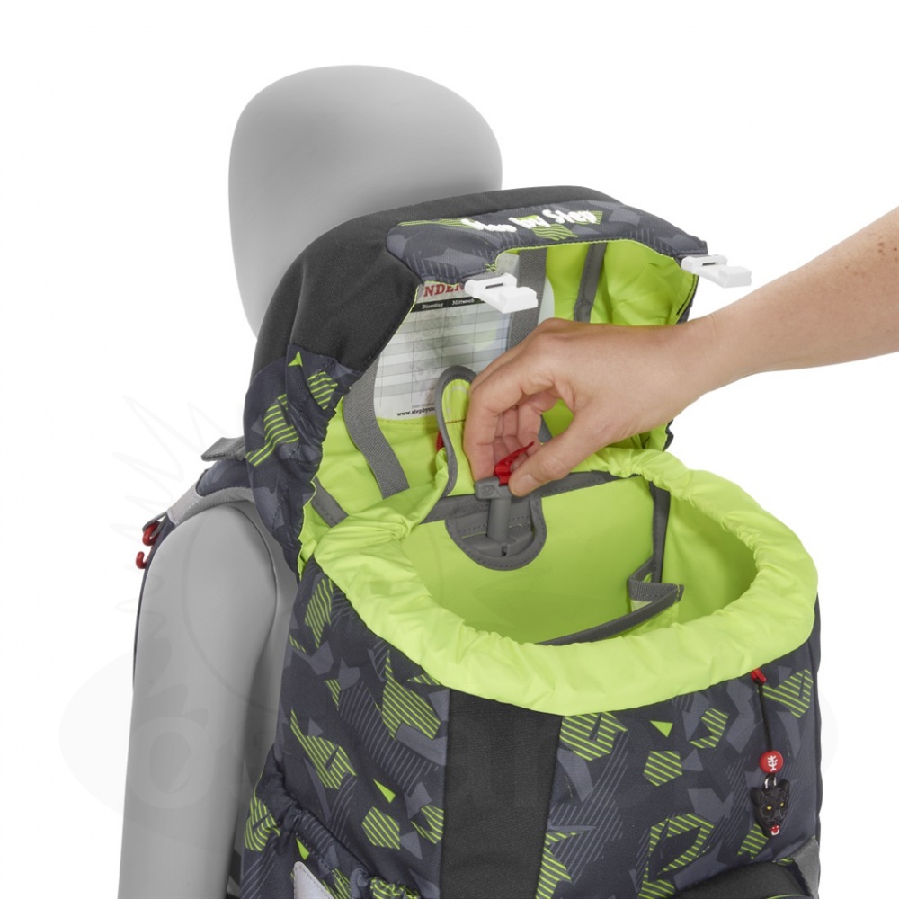 Ребенок сам выбирает, с каким мотивом идти в школу, смена происходит легко и просто. Регулируемая по высоте система для переноски позволяет ранцу легко регулироваться по росту на спине у ребенка, на протяжении начальной школы. Идеально подходит детям с 1 по 4 класс. Регулировка по росту ребенка возможна приблизительно от 100 до 150см. Это гарантирует, что ранец идеально подходит для нескольких классов! Регулируйте высоту ремня с помощью ручки, пока школьный рюкзак не окажется в правильном положении.