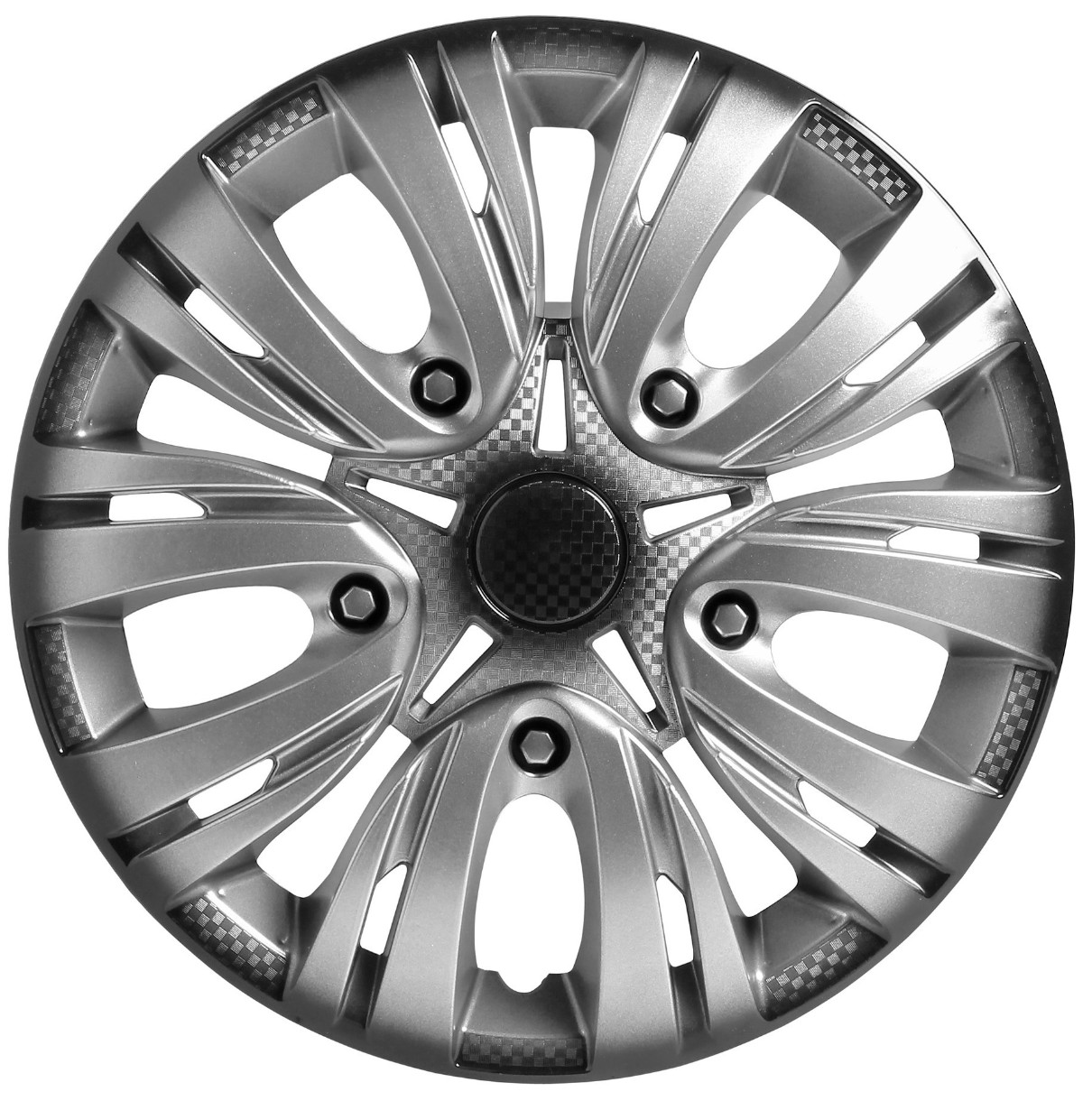 Колпаки изготовлены из ударопрочного полистирола, имеют модную текстуру имитирующую карбон и покрашены в популярные цвета. Снабжены надежными универсальными креплениями позволяющие обеспечивать равномерное распределение давления на все защелки.