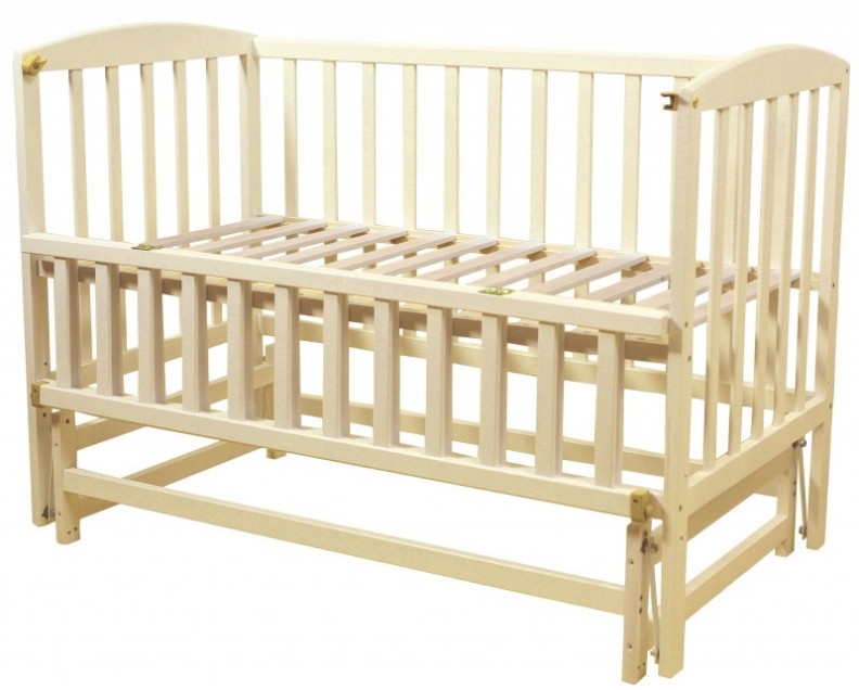 Кроватка укомплектована откидной боковиной, которая служит защитным барьером для ребенка и одновременно при его отбрасывании, облегчает Вам доступ к младенцу. Фиксируется боковина с помощью пластмассовых фиксаторов.