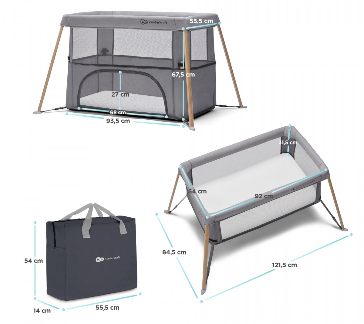 Kinderkraft Movi можно использовать как детскую кроватку и манеж. Простая и быстрая система складывания и легкая конструкция обеспечивают удобство транспортировки, поэтому вы можете легко взять ее с собой в отпуск. Эта кроватка весьма практична – дно устанавливается на 2 уровнях, поэтому ее можно использовать для новорожденных. Верхний уровень также позволит отдохнуть спине родителя – укладывать ребенка, который еще не может самостоятельно поворачиваться, будет гораздо удобнее. Благодаря дополнительному входу кроватку Movi можно также использовать в качестве манежа. Малыш сможет свободно выходить из него, разумеется, под присмотром родителей, Киндекрафт Мови станет переносной, безопасной игровой площадкой для вашего ребенка!