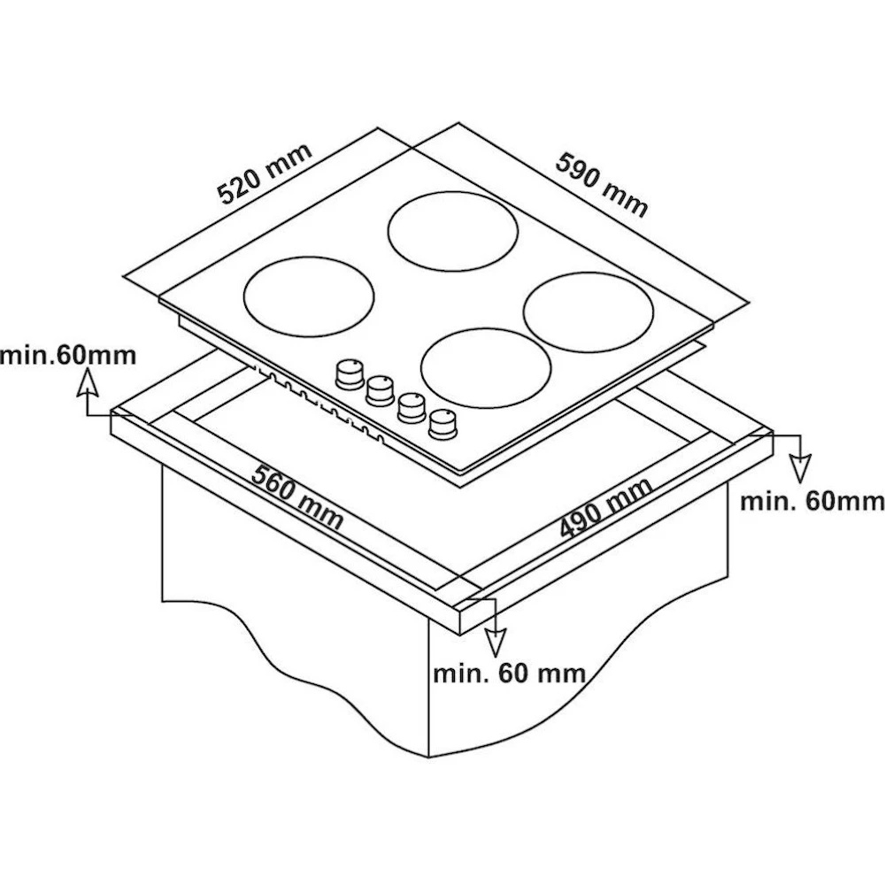 Размеры для встраивания (ШхГ)56x49 см