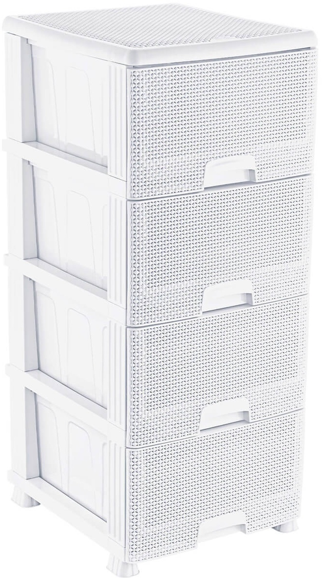 Комод Ozer White Plastik K013 представляет собой удобное решение для хранения вещей в различных комнатах дома. С четырьмя вместительными ящиками он обеспечивает достаточно пространства для одежды, аксессуаров, игрушек, текстиля и других предметов, которые вы хотите держать в порядке.