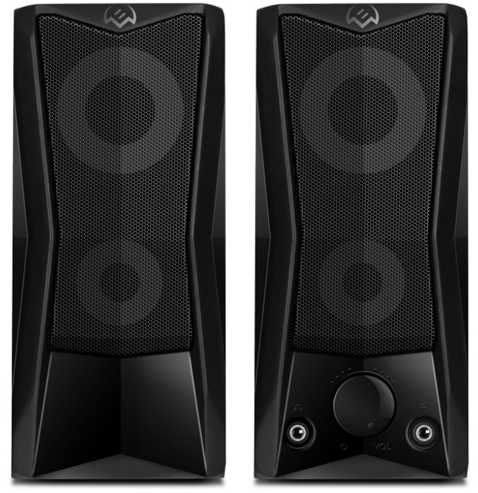 Два динамика диаметром 65 мм. с пиковой мощностью 6 Вт. обеспечивают оптимальное качество и мощную глубину звукам вашей игры в частотном диапазоне 90 — 20 000 Гц. Кроме этого, к акустической системе подключаются наушники и микрофон. SVEN 445 получает питание через USB-порт от компьютера, ноутбука или блока 5V DC. Вам не придется искать дополнительную розетку, и на столе будет меньше свисающих проводов.