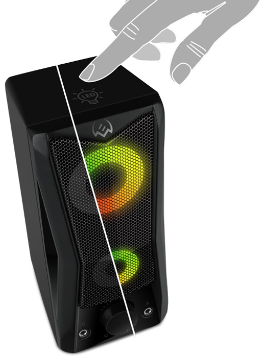 Эти динамики не только дают мощный звук, они взрываются цветом! Разноцветная светодиодная динамическая подсветка в сочетании с матово-черным корпусом отлично вписывается в любую конфигурацию игровой станции. На передней панели каждой колонки находятся два переливающихся светящихся круга. Подсветку можно выключить с помощью сенсора на верхней панели. Звуки игрового мира в сочетании со световыми эффектами мгновенно изолируют вас от реальности. Вы гарантированно получите весь спектр впечатлений!