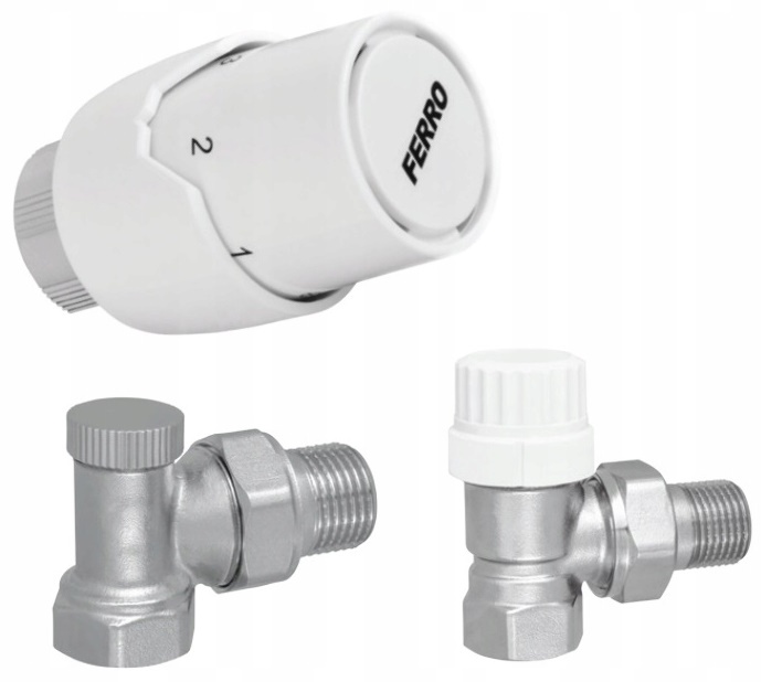 Комплектациятермостатическая головка GT12 с соединением M30x1,5, термостатический клапан угловой ZT5Y G1/2 с соединением M30x1,5, запорный, угловой радиаторный клапан ZK2Y G1/2