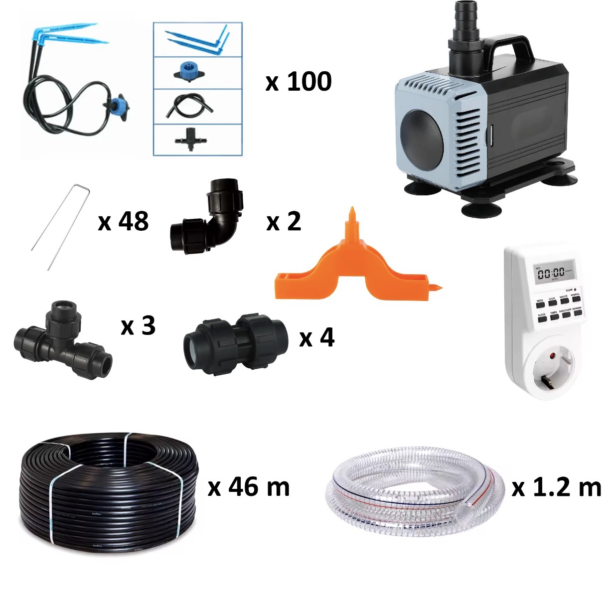 Эффективное решение для автоматического полива до 200 растений на площади 45 м². В комплекте: насос, цифровой таймер и все необходимые компоненты.