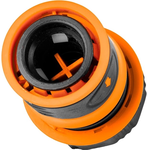 Коннектор садовый Neo Tools 15‑723 — это двусоставной соединитель для шланга диаметром 3/4″, сочетающий пластик и резиновое покрытие для удобного и надёжного захвата. Он оснащён функцией STOP, которая автоматически перекрывает поток воды после отсоединения распылителя или насадки, что позволяет избежать подтёков. Благодаря быстрому соединению типа «цанга», коннектор легко и прочно подключается к шлангу, обеспечивая комфортный монтаж и демонтаж. Оптимальный выбор для дома, сада или дачи.