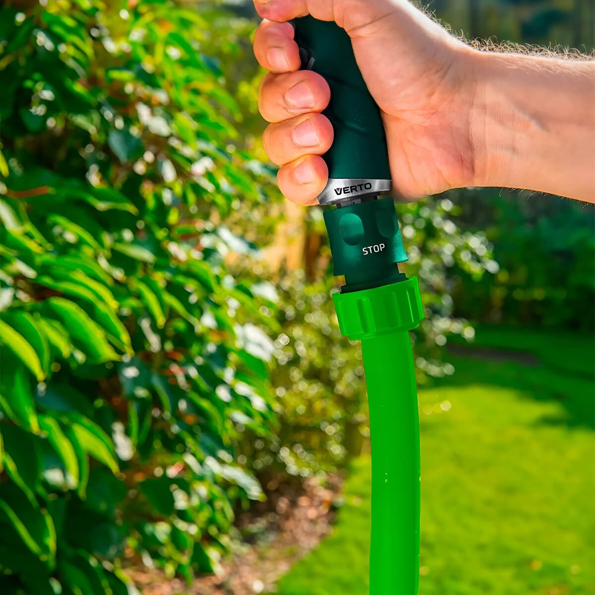 Коннектор садовый Verto 15G723 — это пластиковая муфта для соединения шланга диаметром 3/4″ с поливочной насадкой. Оснащён системой аквастоп, которая позволяет менять насадку без перекрытия воды на кране, делая полив удобным и экономящим время. Корпус выполнен из высокопрочного пластика, устойчивого к механическим нагрузкам и регулярной эксплуатации, обеспечивая долговечность и надёжность соединения.