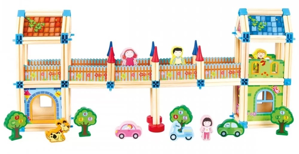 Деревянная развивающая игрушка конструктор Bino Wooden Blocks Large Castle 70353. Отличный комплект для создания конструкций. Цветные деревянные детали совместимы и вместе создают впечатляющие конструкции. Каждый ребенок может стать архитектором и в то же время улучшить навыки мелкой моторики! Вся продукция Bino изготавливается из высококачественных пород дерева. Дизайн игрушки оригинальный, интересный и разнообразный.