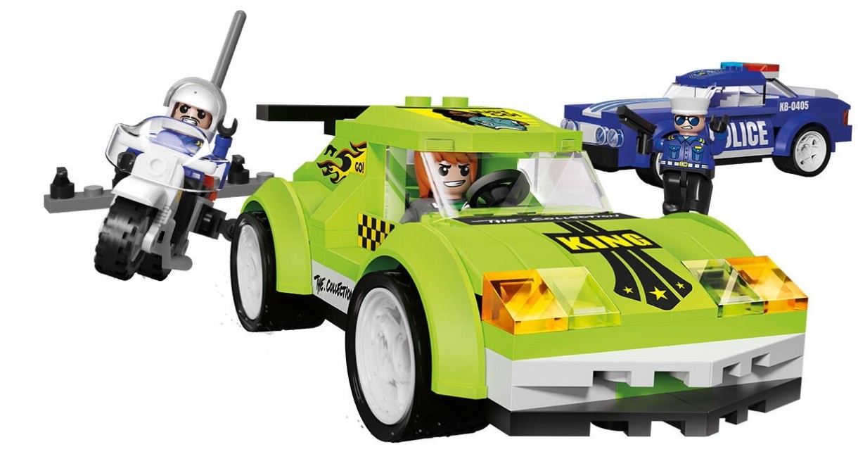 Городская погоня KB0405 наверняка понравится любителям спортивных автомобилей и захватывающих погонь. Набор KB0405 City Chase содержит 299 элементов, которые объединяются в две машины — спортивную машину, полицейскую машину и мотоцикл полицейского преследования. В набор также входят три мини-фигурки: две фигурки полицейских и одна фигурка водителя-сбежавшего.