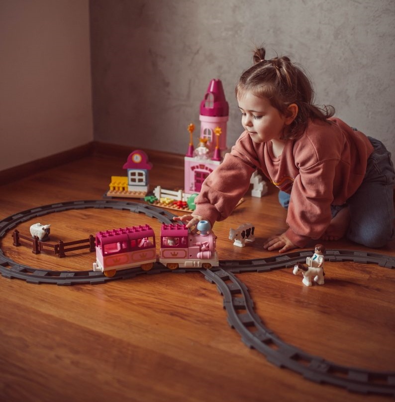 Набор Mubi BLOCKS «Волшебный замок принцессы Лили» — один из двух уникальных и очаровательных наборов, предназначенных для самых маленьких девочек. Наборы с принцессами от MUBI созданы для юных леди от 24 месяцев. Набор кубиков BLOCKS MUBI Волшебный замок принцессы Лили — это набор, который сочетает в себе элегантность дворца принцессы и радость путешествия на королевском поезде! В набор входит красивый замок принцессы Лили, а также фантастический розовый королевский поезд, который едет сам, мигает огнями и даже издает звуки настоящего поезда! В этом наборе кубиков MUBI также есть фигурки — познакомьтесь с принцессой Лили, принцем Алексом и инженером Томом, который управляет королевским поездом MUBI!