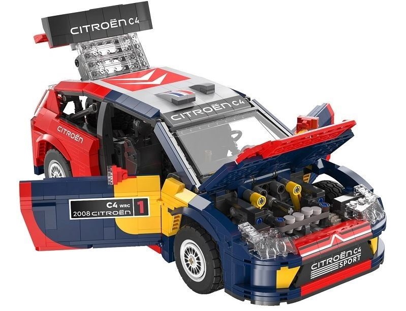 Присоединяйтесь к чемпионату мира по ралли с набором CaDA «Citroen C4 WRC XL» (C62005W). Он предназначен для соревнований WRC и является чемпионским автомобилем марки Citroen WRC 2008 года. Этот ралли-кар с узнаваемым дизайном от Маркуса Шлегеля выпущен по официальной лицензии. Собирается в масштабе 1:12 и состоит из 1569 деталей. Размер автомобиля составляет 32х14х11.5 см. Данная модель обладает большим функционалом: мягко открываются двери, открыв капот можно посмотреть как двигаются поршни, а открыв багажник можно достать запасное колесо. Так же при движении работает подвеска, а передние колёса имитируют рулевое управление. Мотор и пульт в комплект не входят.