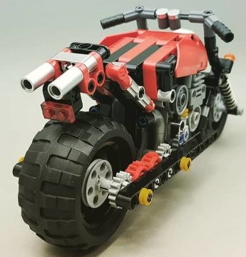 Конструктор «Приключения на байке» от фабрики Декул полностью совместим с Лего. Набор китайского лего из 262 деталей принадлежит к разделу «Техник», к категории «Транспорт». Красный байк с большим баком и большим мотором готов к далеким путешествиям. Мощная вилка с амортизаторами, на которой крепится переднее колесо, и большое заднее колесо с глубоким протектором обеспечивают надежное сцепление с дорогой. Мотоцикл оборудован инерционным двигателем «Pull Back — откати и отпусти», что позволяет создавать множество игровых сценариев. А если объединить данную модель с конструктором Decool 3804 «Оранжевый багги», то можно собрать футуристический трицикл.