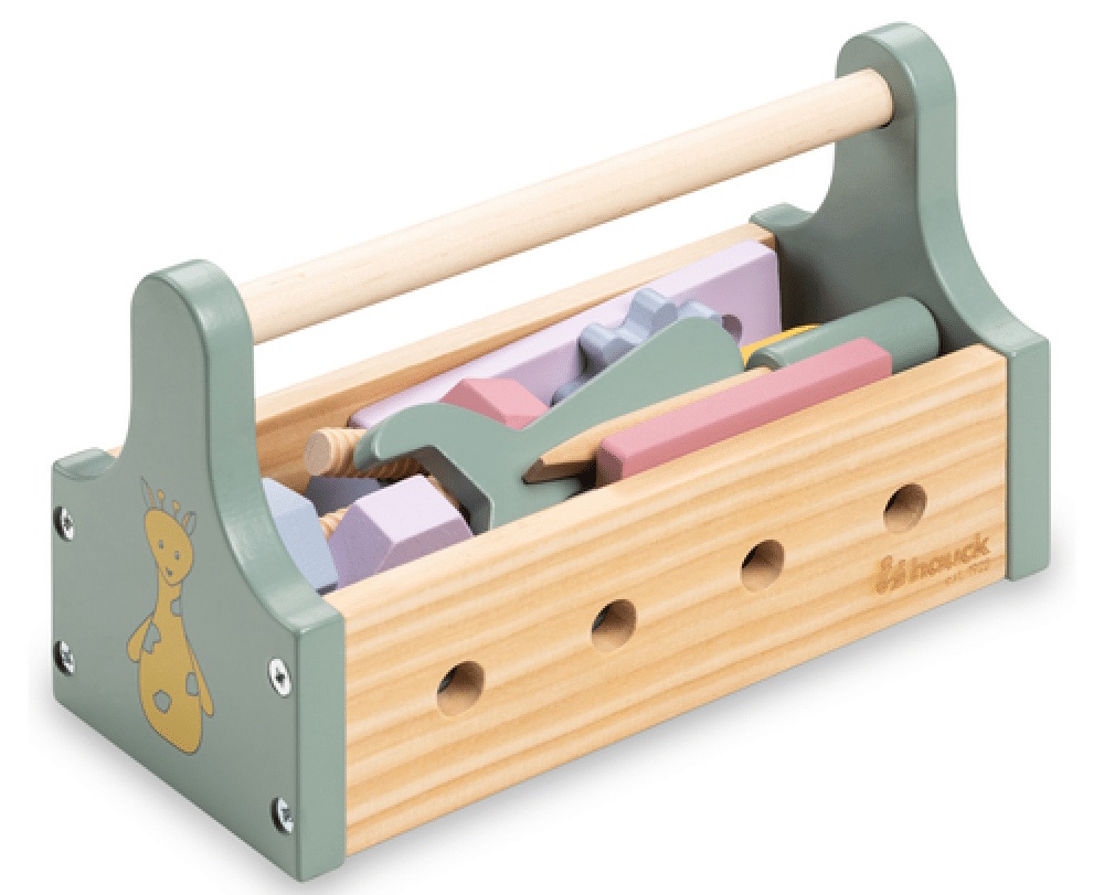 Деревянный ящик для инструментов, созданный с любовью, побуждает ребенка хватать, поворачивать и держаться, что способствует развитию мелкой моторики и зрительно-моторной координации.