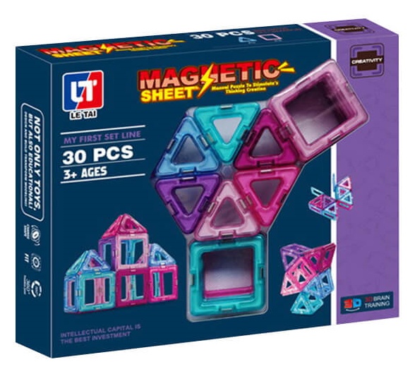 Магнитный конструктор позволит Вашему ребенку создавать различные сооружения применяя в строительстве логику, творчество и фантазию. Набор состоит из 30 элементов.