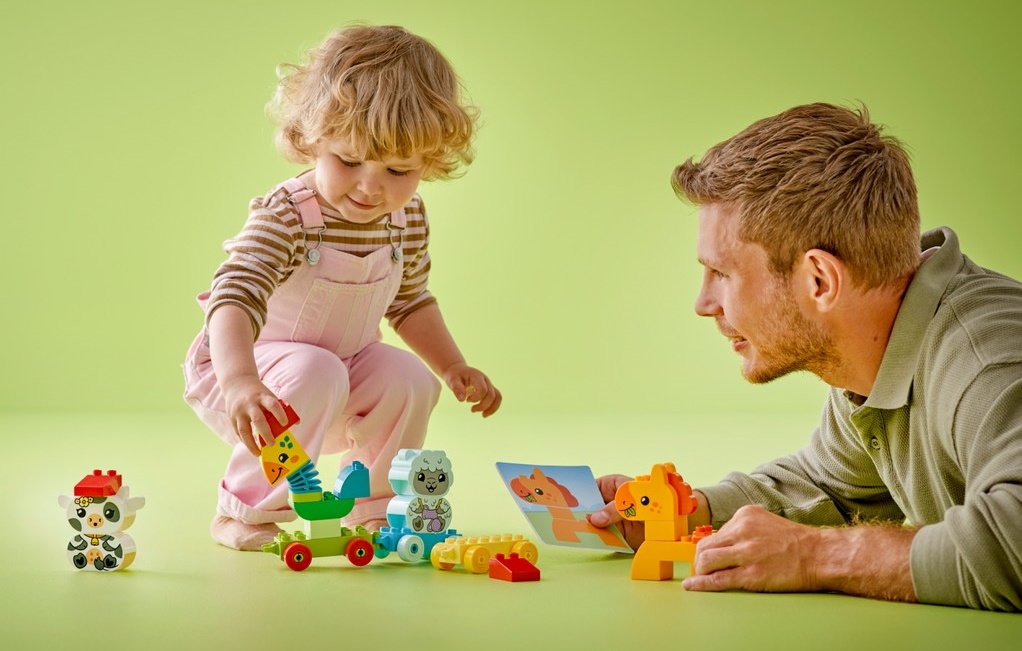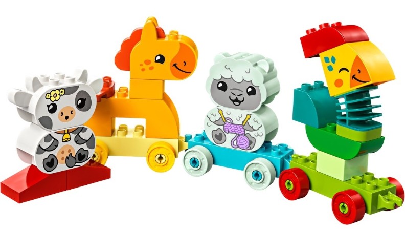 LEGO DUPLO Мой первый поезд с животными это очаровательный набор из 19 деталей, созданный для детей от 18 месяцев. Идеально подходит для творческой игры и обучения через веселье, помогая малышам развивать важные навыки.