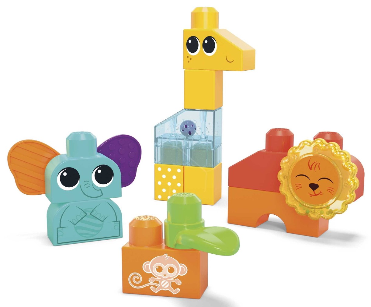 Маленькие строители будут качаться, грохотать и крутиться от радости, когда будут строить своих любимых животных для сафари. С помощью 3 сенсорных функций малыши могут строить, играть и исследовать свои чувства. Они откроют для себя чудеса сафари, когда коснутся и почувствуют текстурированные уши слона, погремят жирафом, чтобы услышать звон колокольчиков, и повернув голову льва, чтобы плести бусинки.