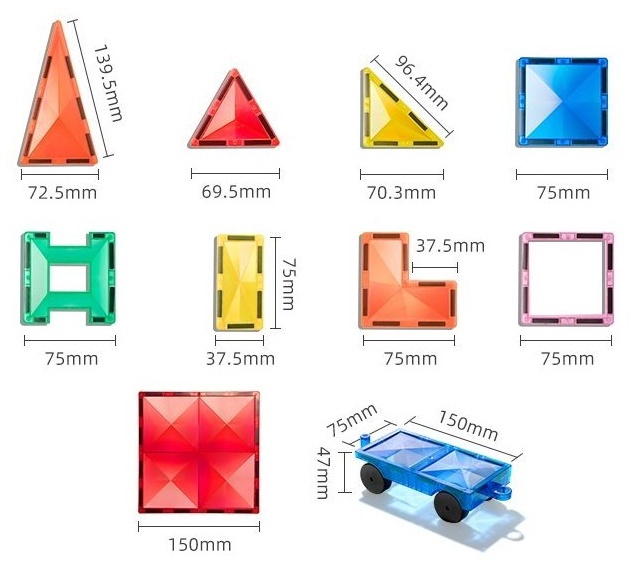Детали отличаются высоким качеством изготовления. В каждой детали надежно закреплено 6-8 магнитов. Детали прозрачны и красиво окрашены, при контакте с светом они выглядят почти волшебно.