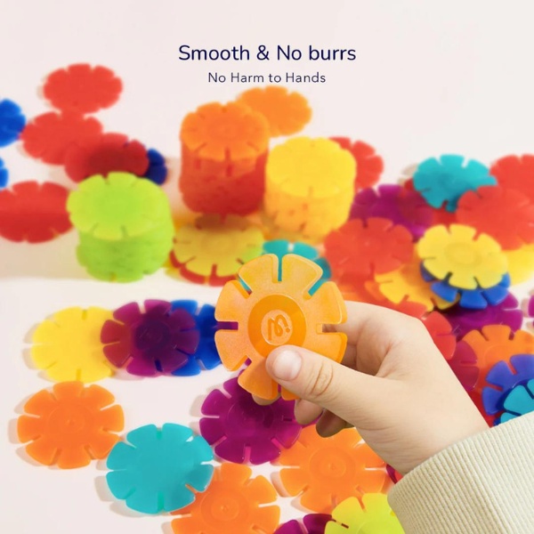 Набор «Цветные снежинки» стимулирует креативность и воображение детей. Эти элементы помогают развивать координацию рук и глаз, улучшая понимание строительных навыков, равновесия и концепций пространства. Патентованный дизайн с канавками предотвращает случайное расцепление деталей. Материал PP, безопасный для кожи, и тщательно обработанная поверхность увеличивают безопасность в использовании. Размеры деталей исключают риск проглатывания.