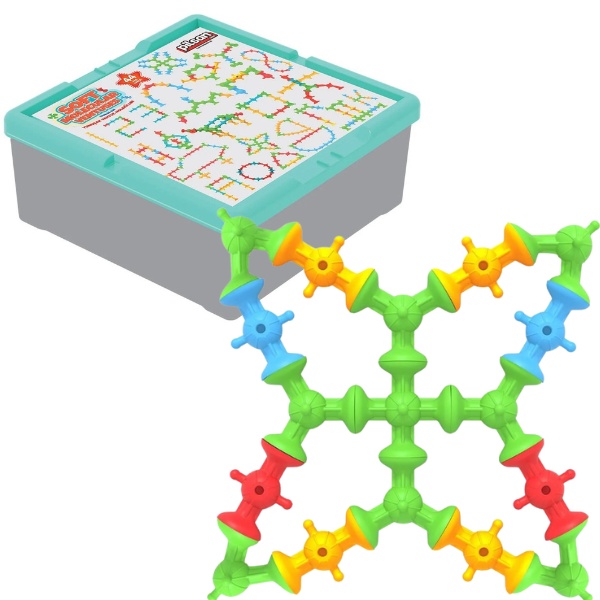 Конструктор из 44 элементов “Мягкие молекулы” на присоске идеально подходит для детей старше 3 лет. Благодаря присоске детали легко держатся друг за друга.