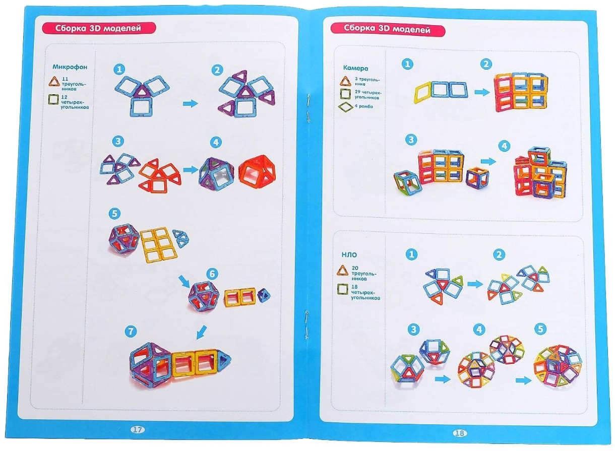 Магниты соединяют элементы конструктора между собой, поэтому для создания моделей не нужно использовать крепления, завинчивать болтики и т.д..