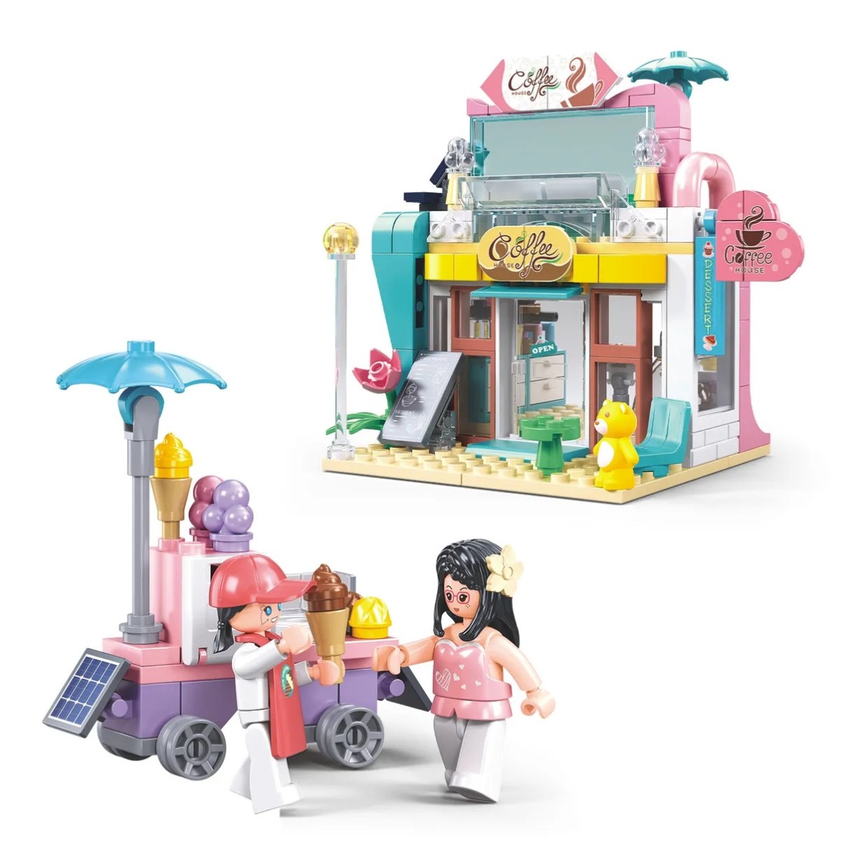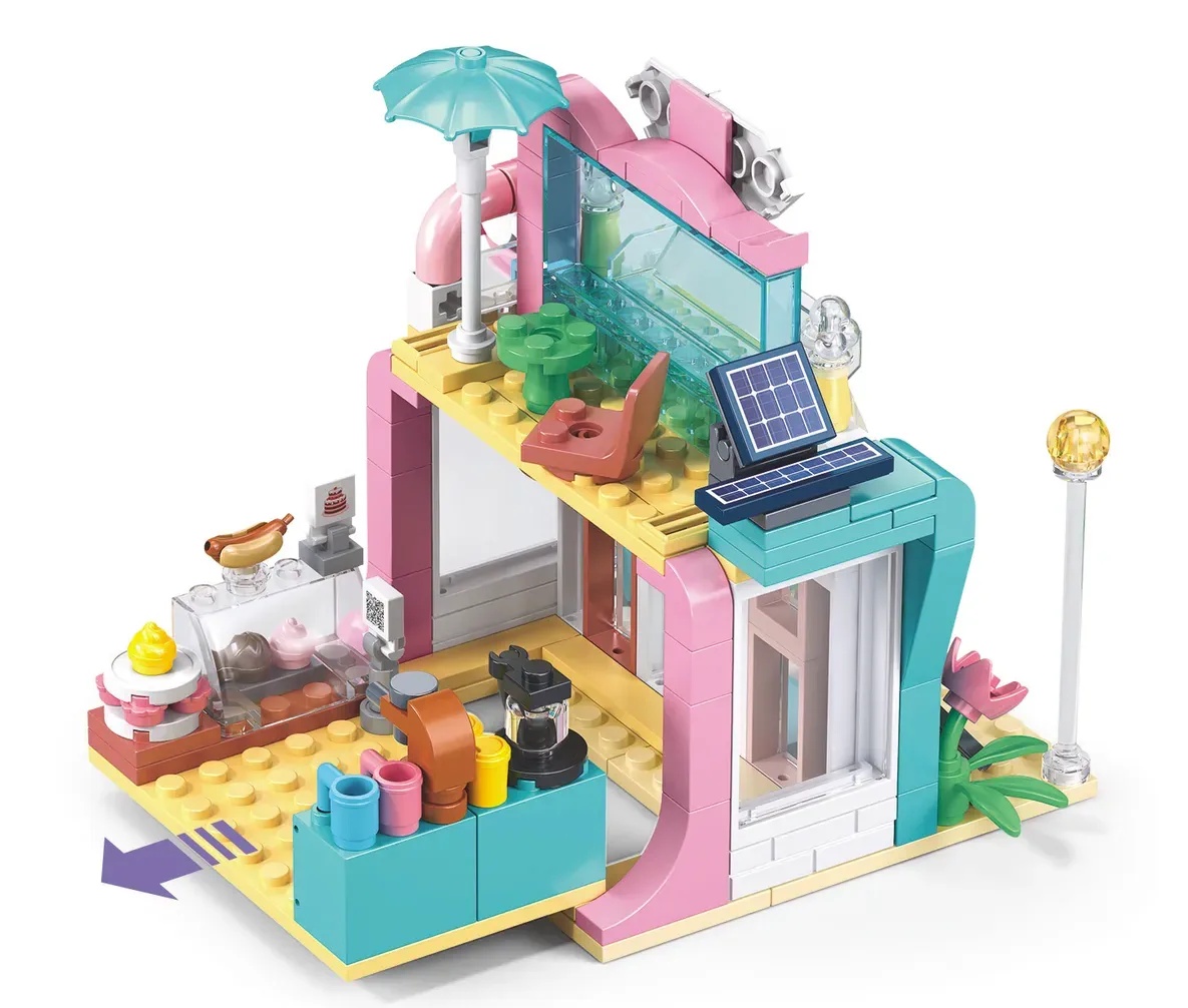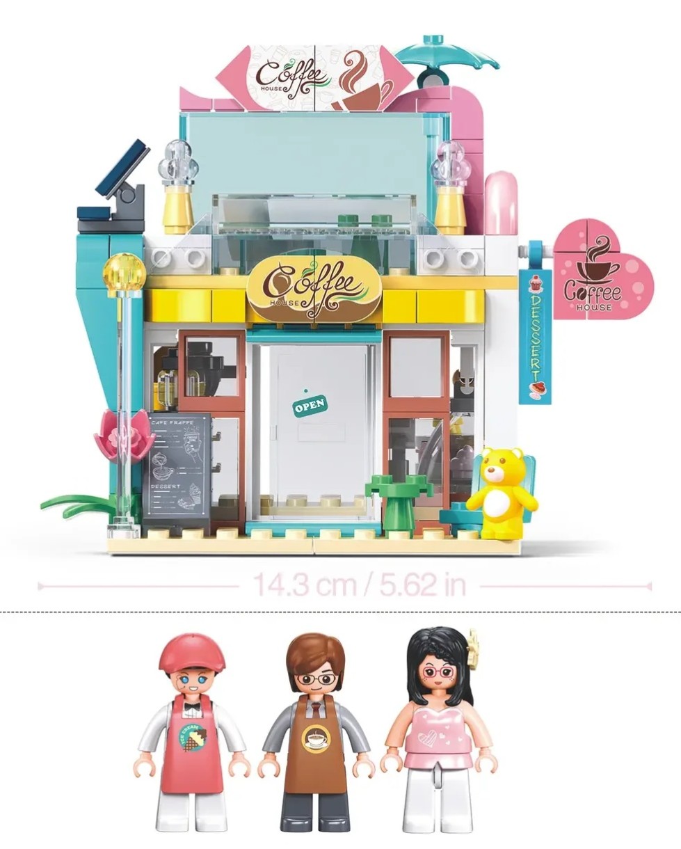 С конструктором Sluban «Кофейня» серии «Мегаполис» ребенок сможет порадовать жителей своего города новой локацией, где они смогут выпить ароматный кофе, полакомиться вкусностями и приятно провести время. Здесь всё как в настоящем кафе: у входа выставлено сегодняшнее меню, в хорошую погоду можно устроиться за столиком на улице, внутри — касса и кухня. А еще, рядом стоит киоск с восхитительным мороженым!