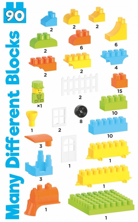 В наборе 90 интересных разнообразных деталей. Кирпичики со срезанными углами и арками для кораблей или забавных животных, заборчики, окошки и двери для сказочных замков. Новая большая пластина в конструкторах этой серии - незаменимый элемент для домиков и других архитектурных форм. Так помещения для куклы становится крепче, его легко переносить и удобно играть. Платформы с колесами - вообще находка. Можно построить автомобиль, поезд или самолет. А еще платформа пригодится при конструировании роботов.